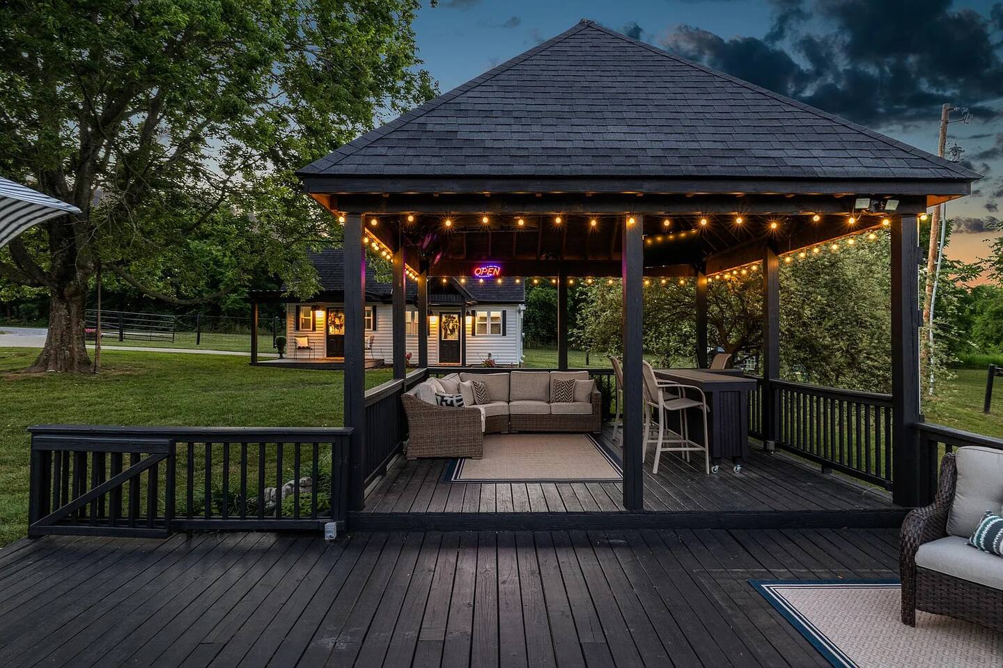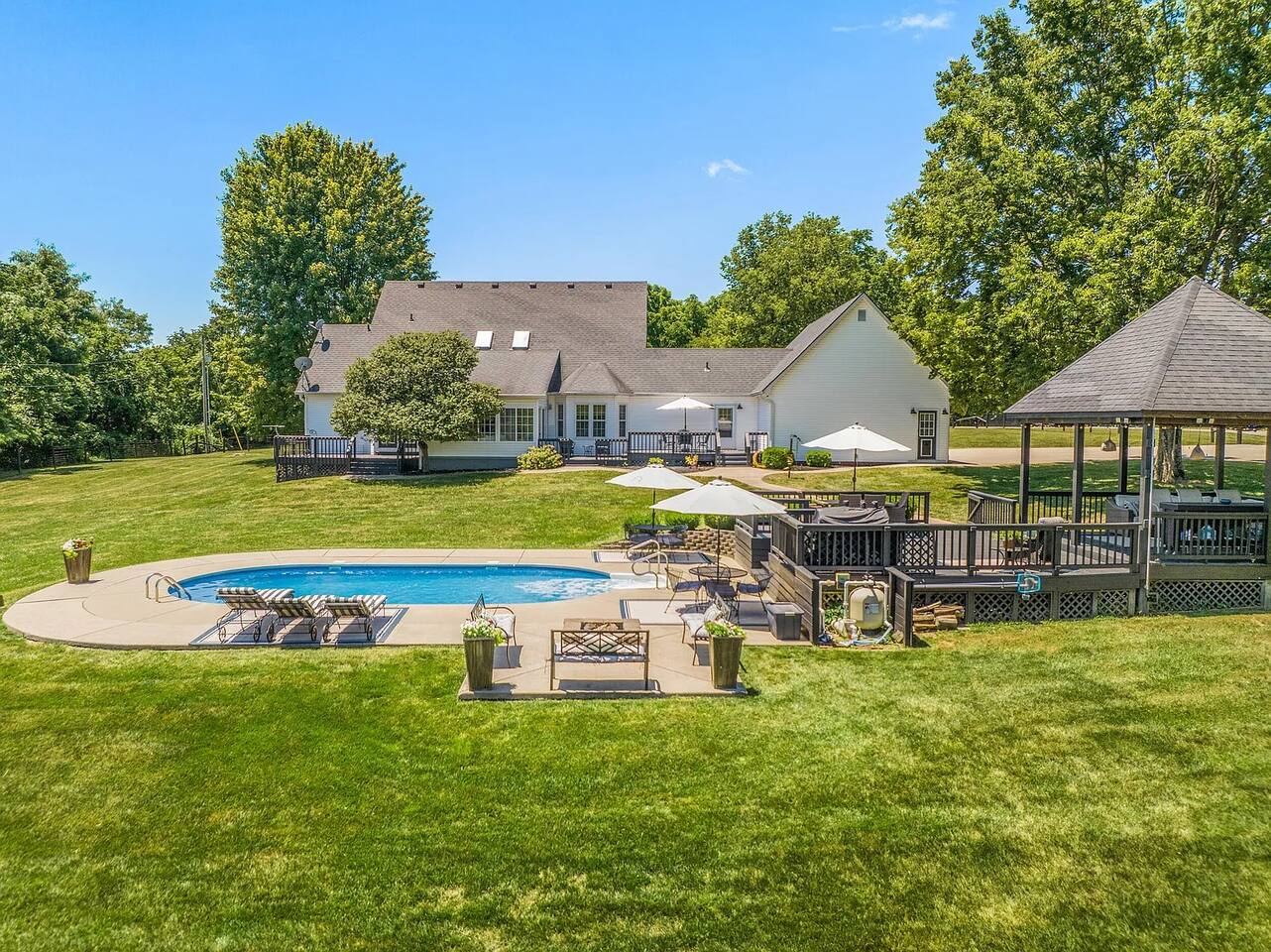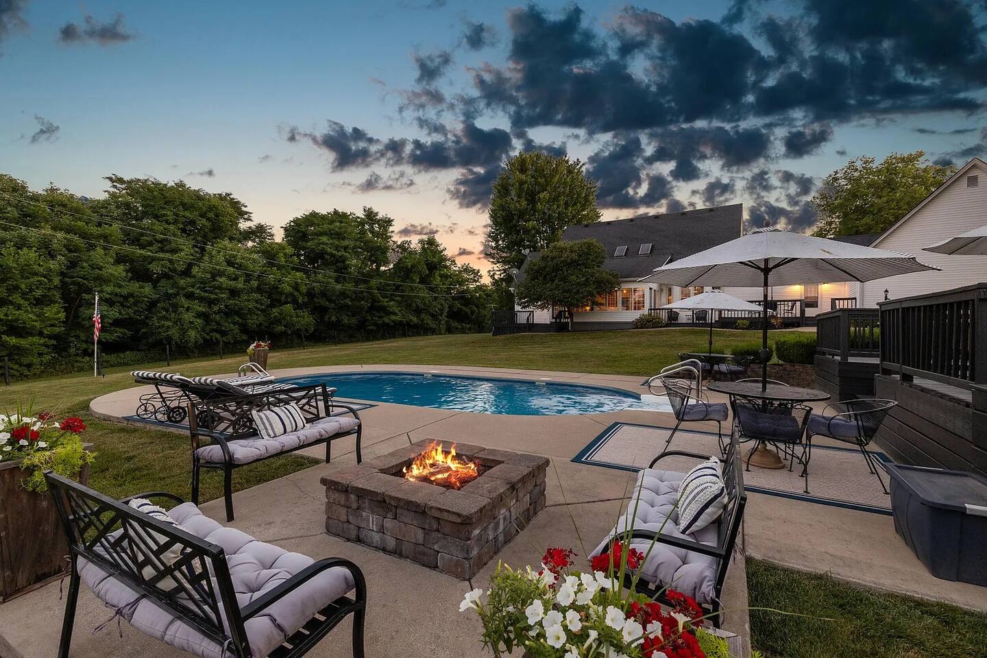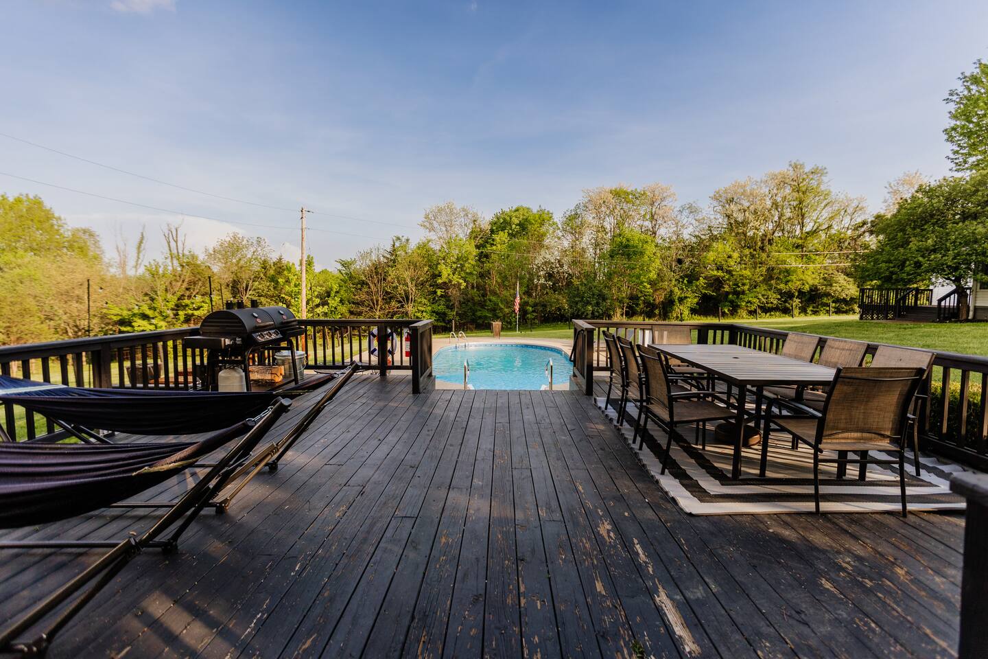 OUTSTANDING LOCATION: ◍ 10 distilleries within 30mi radius, including Four Roses (at only 2mi), Wild Turkey, Woodford Reserve, Castle & Key, and Buffalo Trace, and Bulleit ◍ 20mi to Keeneland for the best horse racing in the country ◍ Multiple renowned golf courses nearby, including Wild Turkey Trace (7mi) and Keene Run Trace (25mi) ◍ Endless sights in the area, including Red River Gorge, Mammoth Cave National Park, Ark Encounter ◍ NEW: Exclusive discount for tours with our partners at Horse & Barrel Tours!! PROPERTY HIGHLIGHTS: ◍ 4,500 SF in 4 acres of privacy ◍ 7 comfortable bedrooms, sleeps 20 ◍ 5 full bathrooms ◍ Chef's kitchen ◍ Sunroom and outdoors / indoors dining ◍ Game room / speakeasy on 900 SF ◍ Large heated swimming pool with tiki hut ◍ Hot tub ◍ Fire pit ◍ EV charger ◍ Family-friendly with playground, pack & plays, high chairs, and kid-friendly plate ware ◍ Pet-friendly with essentials for the furry friends ☆☆ BEDROOMS & BATHROOMS - Privacy & Comfort ☆☆ 🛏️ Master Suite (Bedroom 1) – Features a cherry canopy King size bed, elegant wallpaper, TV, spa-like en suite with soaking tub & walk-in shower, walk-in closet, and direct porch access 🛏️ Bourbon Bedroom (Bedroom 2) – Bourbon-inspired decor with a Queen size bed, TV, a dedicated full bathroom and walk-in shower 🛏️ Paddock Bedroom (Bedroom 3) – Equestrian-themed with Queen size bed, TV and access to a shared full bathroom 🛏️ Barrel Rack Bedroom (Bedroom 4) – Two full-sized bunk beds (4 beds total), sharing a bathroom with the Paddock Bedroom 🛏️🛏️🛏️ Family Suite consisting of Private Queen Room (Bedroom 5) & Foyer Area (Bedroom 6), each with a TV – Includes a queen bed, two bunk beds (each with 1 full, 1 queen), and access to a full bathroom downstairs 🏠 Pool House (Bedroom 7) - Private Family Suite featuring a pull-out sofa, TV, two lofted queen beds, full bathroom with shower, and a kitchenette ☆☆ KITCHEN & DINING - Cook, Gather & Savor ☆☆ 👨🍳 Fully Equipped Chef’s Kitchen - With modern appliances, spacious countertops, all the cookware and dinnerware you will need, cooking essentials (oil, spices etc.), tea & coffee corner (drip and pods) 🔥 Outdoor BBQ at the Tiki Hut – Grill up something delicious poolside while enjoying the scenery 🍽 Multiple Dining Options - Formal Dining Room, Breakfast Nook overlooking the pool, Outdoor Dining (multiple porches and tiki hut) 🧼 Easy Cleanup – Large dishwasher for effortless tidying ☆☆ INDOOR HANGOUT SPACES - Relax, Play & Connect ☆☆ 🛋 Spacious Living & Sunroom - Cozy seating, natural light, two-story fireplace, vinyl player, and classic board games for fun-filled gatherings 🎱 Game Room – Endless Entertainment: Pool Table, Foosball & casino-style Poker Table, Classic Arcade Machine (300 games, 1-2 players) 🍸 Speakeasy Corner – The Ultimate Lounge with Mixing Bar, Huge Sectional Sofa and a 65" Smart TV ☆☆ OUTDOOR FUN - Your Private Oasis ☆☆ 🏊 Private Swimming Pool with Whirlpool & Hot Tub – Cool off in the pool or unwind in the 6-person hot tub 🍹 Tiki Hut & Outdoor Entertainment – Enjoy TVs, a BBQ grill, and a spacious dining area for poolside meals & late-night conversations 🔥 Fire Pit & Stargazing – Roast marshmallows & enjoy Kentucky’s beautiful night sky 🛝 Playground for Kids – Inviting & fun space for little adventurers 🪑 Country Porch – Classic chairs & a cozy swing, perfect for coffee or bourbon while soaking in the peaceful surroundings 🧘🏼♀️ Wrap-around decks for dining and your daily sun salutations ☆☆ SAFETY & RULES ☆☆ ◍ The property is inspected regularly for emergency preparedness, fall prevention, fire safety etc. ◍ We do not allow smoking or parties. Please reach out if you want to organize an event (e.g., wedding, company retreat) ◍ We allow up to 2 pets upon approval and with additional fee ($25/day/pet) ◍ For days without same-day turnarounds, we can offer early check-ins and late check-outs at the following rates: $100 for up to 2 hours, $250 for 2 to 4 hours, and a full day's rate for more than 4 hours ◍ Please note that you will be asked to sign a guest agreement: refer to "additional rules" for the full details. ◍ We strongly advise purchasing trip insurance when making a booking. Please refer to our cancelation policy for additional information. We cannot provide a refund based on weather-related events. With endless amenities & beautiful scenery, this estate offers the perfect mix of fun & tranquility! Book today and get ready to make some lasting memories